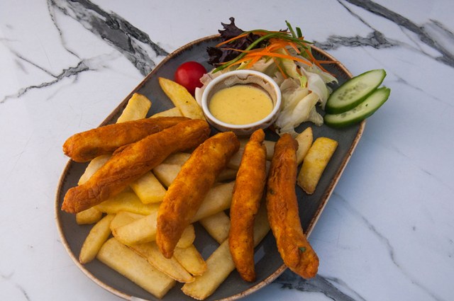 Parmak patates,160 gr cajun baharatı ile panelenmiş piliç parçaları honeymustart sos & sweet chilli sos ile servis edilir.